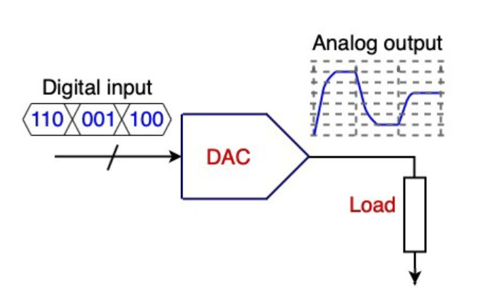 DAC, 顧名思義,就是將數(shù)字信號轉(zhuǎn)變?yōu)槟M信號,如下圖所示, N位的數(shù)字信號,對應(yīng)2^N-1個(gè)大小不同的模擬電平。DAC的主要性能指標(biāo)包括分辨率、最大工作頻率、建立時(shí)間、功耗等。 DA......